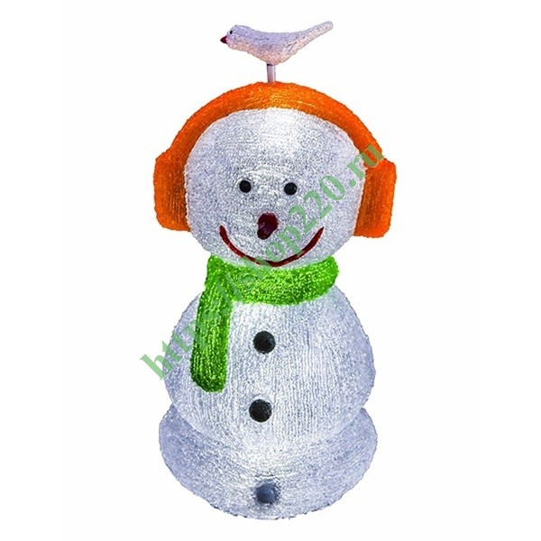 Снеговик защищен от влаги по классу защиты IP 44. Освещение производится от общей сети 220 В через специальный понижающий драйвер для светодиодов. Благодаря чему данную новогоднюю фигуру led можно без опасения установить на улице, а также и в помещениях дома, офиса, бара или ресторана и других общественных местах.