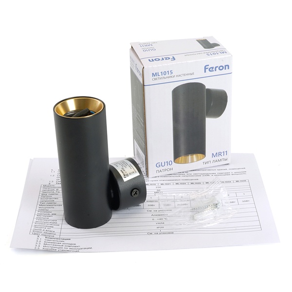 Накладной, настенный, ламповый светильник акцентного освещения, под 1 лампу с цоколем GU10 мощностью до 35 Ватт, цвет черный/золото 51385