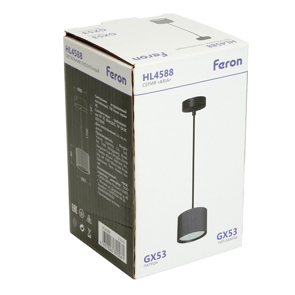 Подвесной ламповый алюминиевый светильник Feron Aria, под лампу с цоколем GX53 максимальной мощностью 12 Ватт, цвет черный 51679