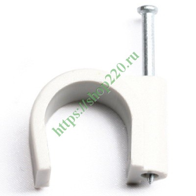Скоба пластиковая с гвоздем, цвет белый, д.9 - 10мм