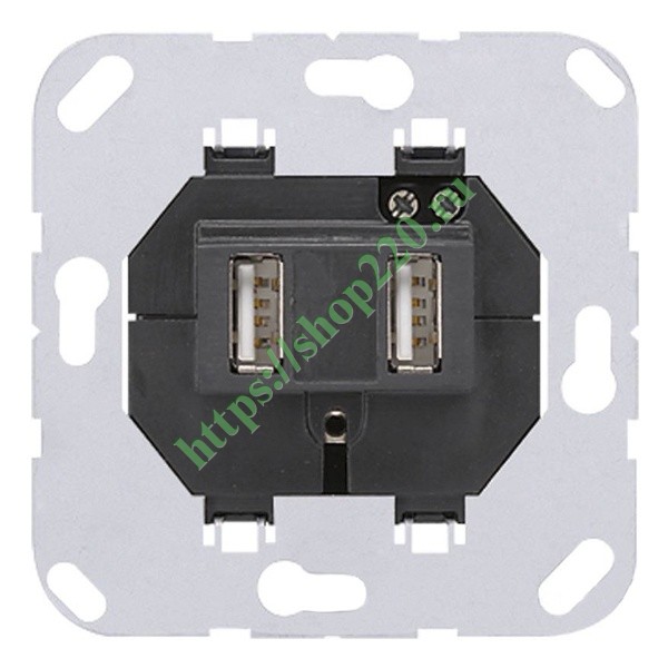 USB зарядное устройство (винт, без крепежных лапок) 2USB порта типа A для зарядки и питания различных устройств Jung 521-2USB