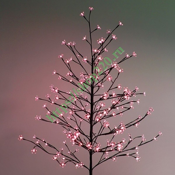 Комнатное светодиодное дерево «Сакура» изготовлено из прозрачного пластика (ПВХ). Его высота составляет 1.5 м. В крону дерева вмонтировано 120 светодиодов красного свечения общей мощностью 12 Ватт. Питание осуществляется от электросети 230 Вольт через понижающий блок питания, который выдает на диоды напряжение в 24 Вольт (в комплекте).