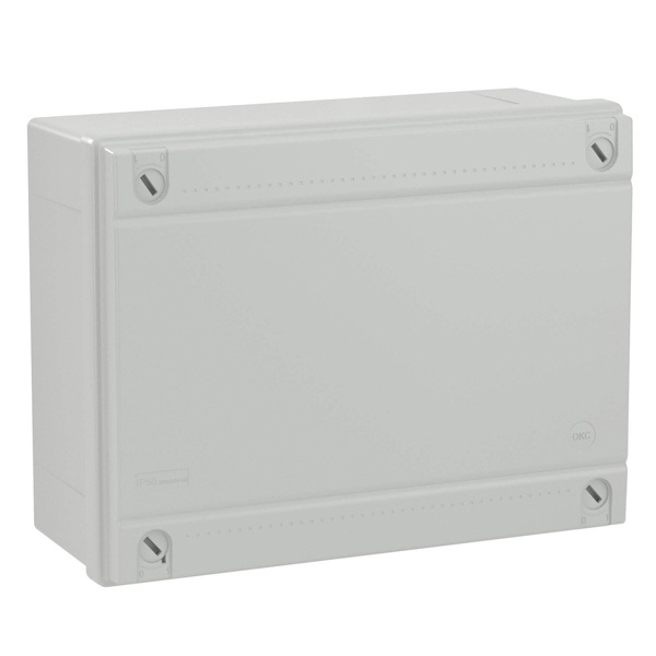 В состав системы "Express" входят жесткие и гибкие армированные трубы, аксессуары для их крепления и соединения, корпуса для накладного монтажа электроустановочных изделий ДКС серии "Viva". Жесткие гладкие трубы применяются для прокладки электрических, телефонных, телевизионных сетей, выполненных шнурами, кабелями, проводами. В серию входят ответвительные коробки для открытого настенного размещения. Они различаются по количеству и конструкции кабельных вводов. Ответвительные коробки серии "Express" обеспечивают быстрый монтаж и доступ к кабелю при необходимости. Коробка ответвительная с гладкими стенками. Размер коробки - 300х220х120 мм. Конструкция обеспечивает высокую степень герметизации - IP 56.