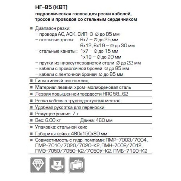 Характеристики по классификатору Etim по данным производителя:Ножницы кабельные / Тросорез EC000142