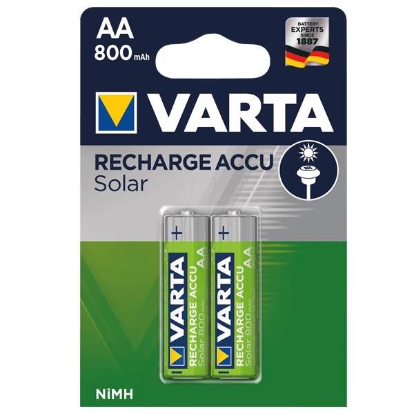 Никель-металлогидридные NiMH (Ni-MH) аккумуляторы Varta Solar типоразмера АА/HR6, емкостью 800 мАч, упаковка 2 штуки 56736101402