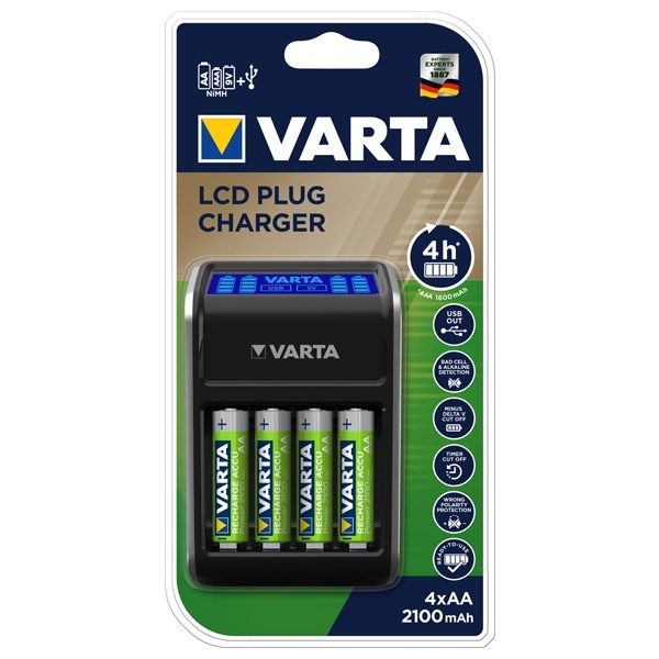 • Зарядное устройство Varta LCD Plug Charger+4xAA 2100 мАч 4008496773510