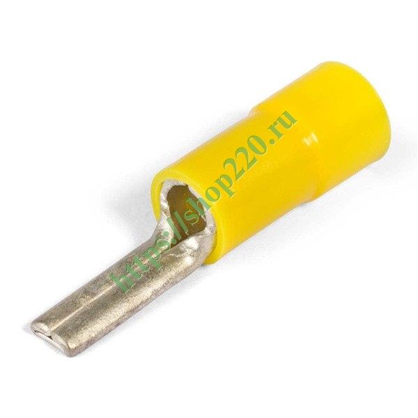 Плоский штифтовой изолированный наконечник НШПИ(н) 25 от электротехнического завода КВТ предназначен для оконцевания опрессовкой многопроволочных медных проводов и последующего крепежа к клеммам электрического оборудования. При этом опрессовка производится поверх изолирующей манжеты. Она сделана из самозатухающего нейлона синего цвета без галогенов и выдерживает температуру до 105 градусов Цельсия. Материалом изготовления наконечника выступает медь марки М1, покрытая методом электролитического лужения. Это обеспечивает дополнительную защиту изделия от внешних воздействий и увеличивает срок его службы. Длина наконечника составляет 43 мм, а допустимое сечение провода – 25 мм2. Изделие выдерживает номинальную нагрузку тока в 115 Ампер при максимальном напряжении 690 Вольт. Узкая плоская форма контактной части обеспечивает возможность подключения к современным электротехническим устройствам с ограниченными параметрами вводных клемм. Исполнение по типу Easy Entry предполагает формат манжеты в виде раструба, который облегчает монтаж жил. Благодаря заваренному стыковому шву на трубной контактной части, ориентация наконечника в матрицах инструмента не имеет значения. Наличие поперечных засечек на внутренней поверхности трубной части изделия увеличивает механическую прочность соединения с жилой. Упаковка включает в себя 100 наконечников.