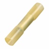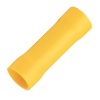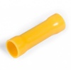 Соединительная изолированная гильза в термоусаживаемом корпусе ГСИ-Т 6.0 от электротехнического завода КВТ предназначена для соединения встык медных проводов методом опрессовки. Причем опрессовка производится поверх изолирующего корпуса, который имеет желтый цвет и выполнен из сшитого полиэтилена без галогенов. Он выдерживает температуру до 105 градусов Цельсия и имеет полупрозрачное исполнение, которое позволяет контролировать глубину захода жил. Термоусаживаемая трубка с клеевым слоем обеспечивает полную герметичность и антикоррозионную защиту контактного соединения после усадки. Материалом изготовления гильзы выступает медь марки М1, покрытая методом электролитического лужения. Такой способ воздействия на металл обеспечивает дополнительную защиту изделия от внешних воздействий и увеличивает срок его службы. Общая длина гильзы составляет 41 мм, а допустимое сечение проводов имеет диапазон от 2.5 до 6 мм2. В пределах указанного диапазона возможно соединение в одну линию проводов разных сечений или монтаж ответвления. Гильза выдерживает номинальную нагрузку тока в 48 Ампер при максимальном напряжении 690 Вольт. Наличие стопорной высечки, расположенной по центру изделия, позволяет определить глубину захода провода в соединитель, а снятые по его краям фаски облегчают заведение провода. Комплект поставки включает в себя гильзы в количестве 100 штук.