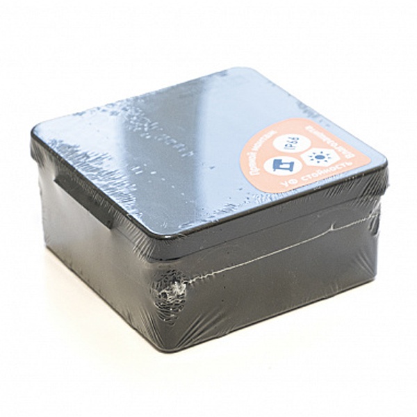 Двухкомпонентная безгалогенная герметичная квадратная распаячная коробка Промрукав, черного цвета, размер 100*100*50мм 60-0300-9005
