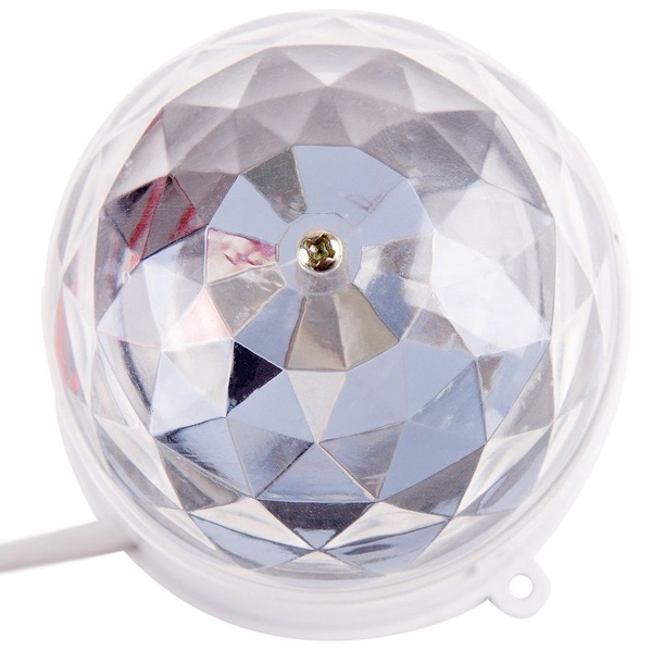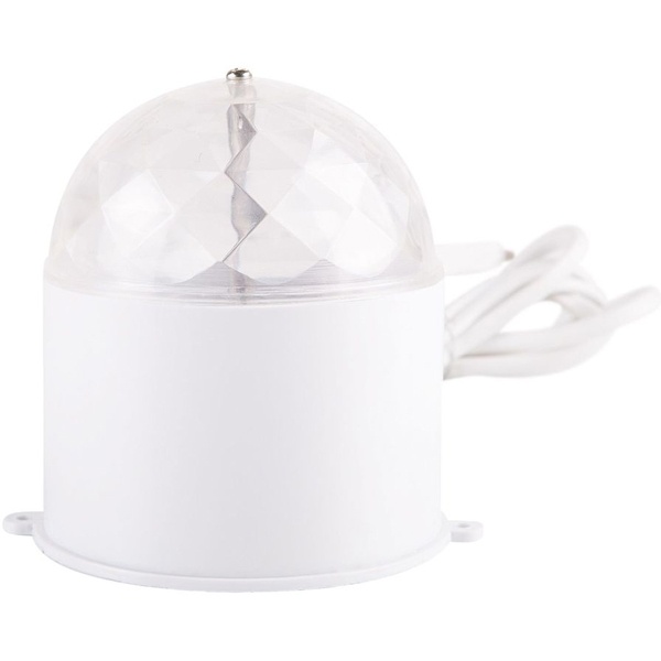 Диско-лампа со встроенными цветными светодиодами предназначается для создания эффекта цветомузыки. Корпус лампы имеет форму цилиндра, изготовлен из высококачественного белого пластика. Сверху цилиндра расположен многогранный, преломляющий поток света, прозрачный куполообразный колпак. Внутри цилиндра расположены три ярких светодиода общей мощностью 6 Ватт. Входное напряжение на светодиоды подается от обычной электросети напряжением 220 Вольт. Диско-лампа оборудована защитой от воздействия влаги и других отрицательных атмосферных явлений. Степень защиты - IP20, изделие может использоваться в температурном режиме от -20 до +40 градусов. Может применяться в качестве источника декоративного освещения на праздничных вечеринках, корпоративах и других веселых мероприятиях. Краткие технические характеристикиИсточники свечения – 3 светодиода.Напряжение - 230 Вольт.Мощность - 6 Ватт.Тип свечения – Мультиколор.Габариты – 80х80х100 мм.Класс защиты от влаги - IP20.Рабочий температурный режим - от -20 до +40 градусов.Производитель - Neon-Night.