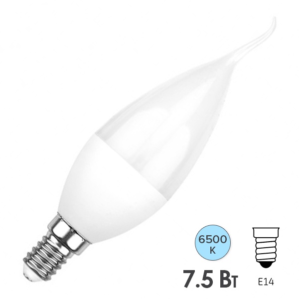 Энергосберегающая LED лампочка свеча на ветру, мощностью 7,5 Вт, с цоколем E14 (миньон), холодный свет 604-047