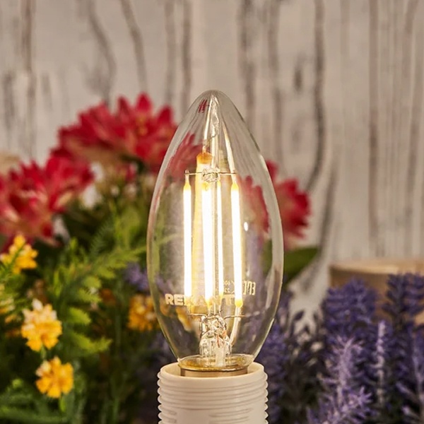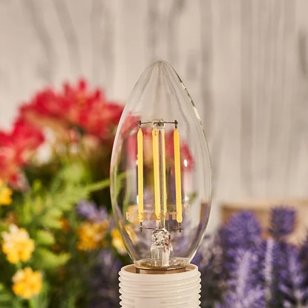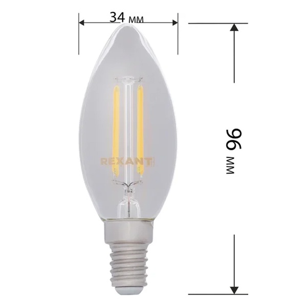Филаментная прозрачная лампа REXANT CN35 в форме свечи идеально подходит для создания стильного и уютного освещения в жилых комнатах, домах, гостиницах, кафе и других интерьерных пространствах.