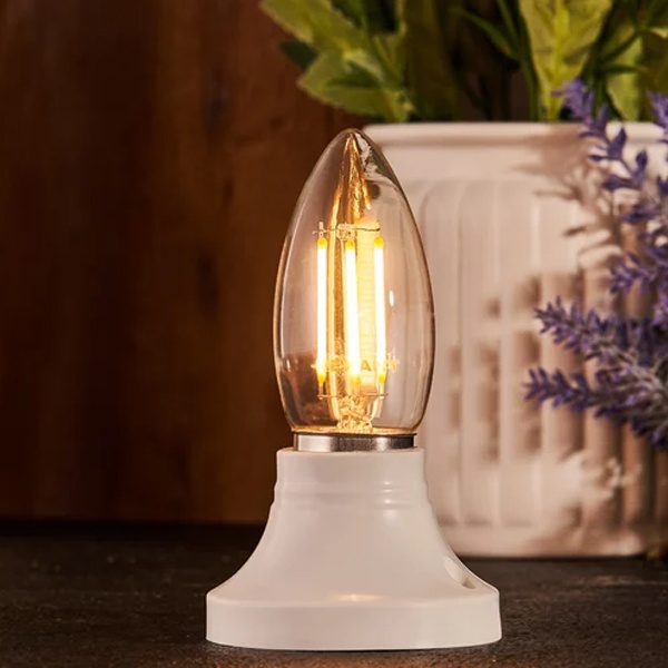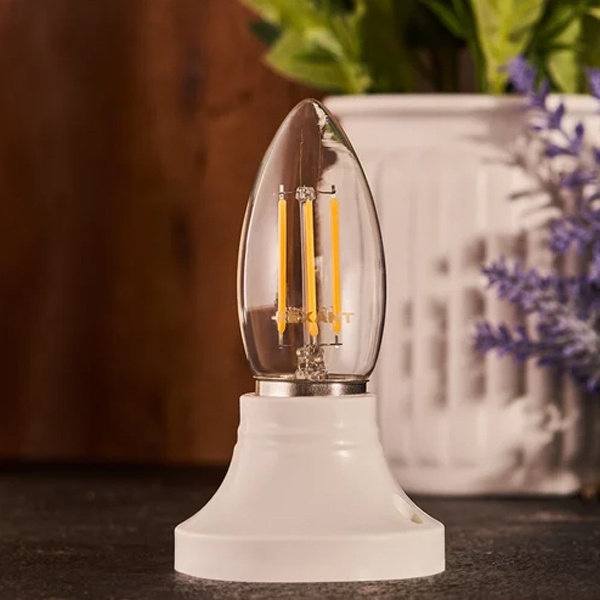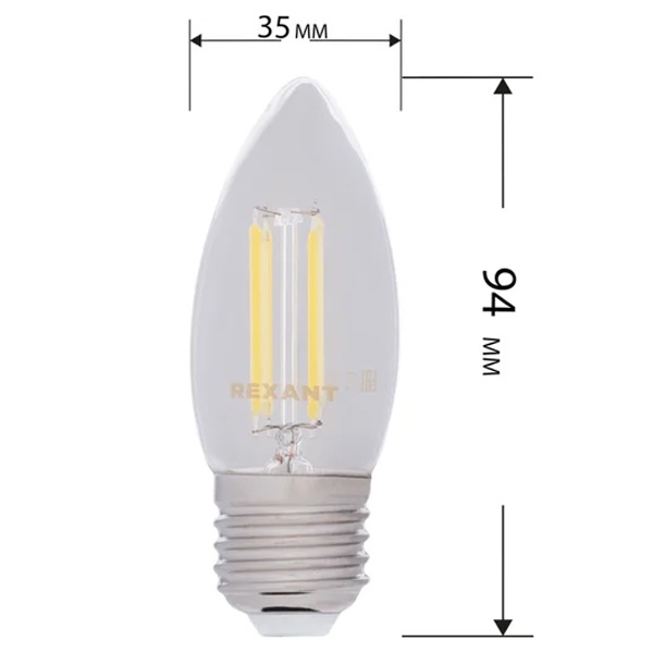 Филаментная прозрачная лампа REXANT CN35 в форме свечи идеально подходит для создания стильного и уютного освещения в жилых комнатах, домах, гостиницах, кафе и других интерьерных пространствах.