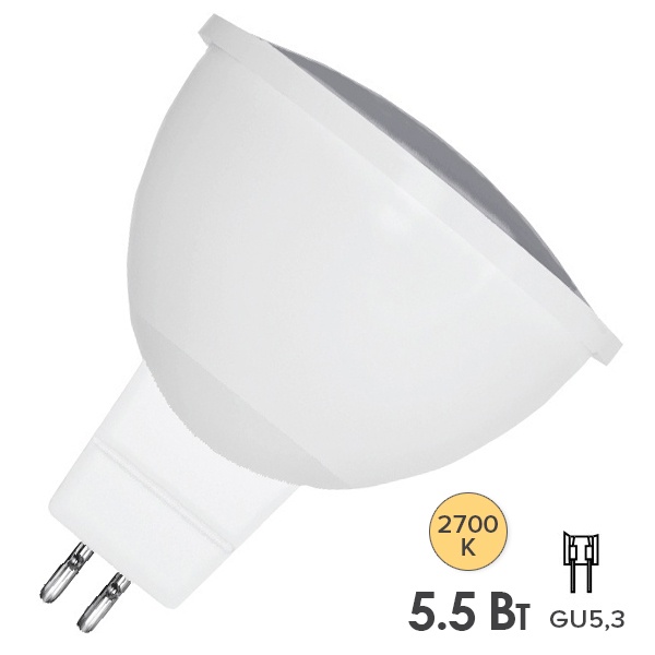 Низковольтная энергосберегающая LED лампочка мощностью 5,5 Ватт с цоколем GU5,3 теплый свет 606839
