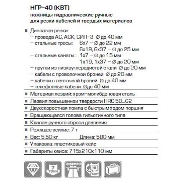 Характеристики по классификатору Etim по данным производителя:Ножницы кабельные / Тросорез EC000142