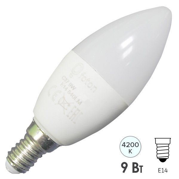 Лампа светодиодная свеча Foton FL-LED C37 9W 4200K 220V E14 840Lm холодный свет 610287