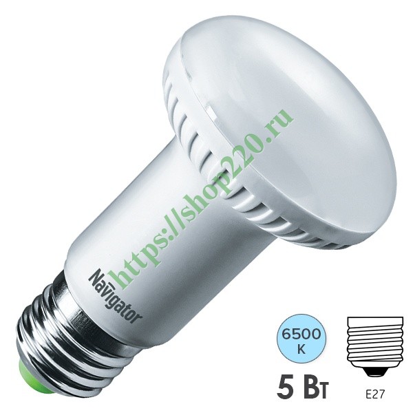 Светодиодная лампочка с отражателем Навигатор, мощностью 5 Ватт, с цоколем E27, холодный дневной свет, матовая колба 61256