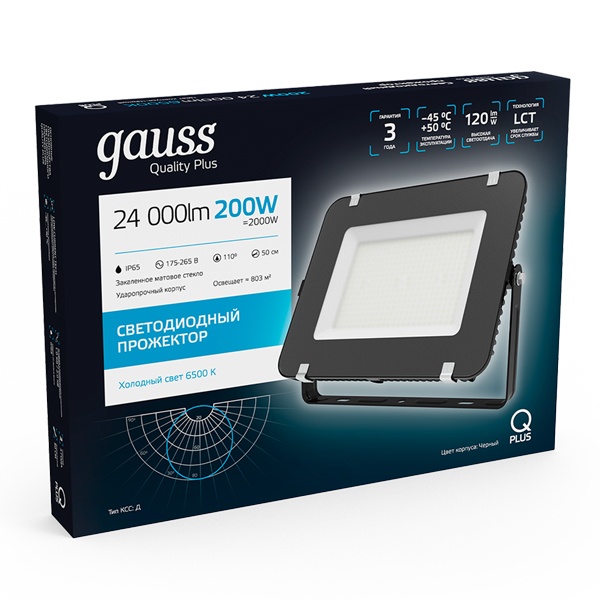 613100200 Прожектор светодиодный Gauss Qplus 200W 6500K 17500lm IP65 черный