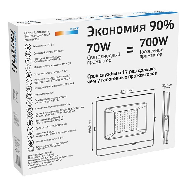 Базовая линейка прожекторов Gauss. Металлический корпус отлично отводит тепло от светодиодов, а качественный драйвер обеспечивает надёжную защиту от перепадов температуры и напряжения.
