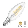Энергосберегающая LED лампочка свеча с нитевидными светодиодами, мощностью 6 Ватт, с цоколем E14, теплый свет, прозрачная колба 61354