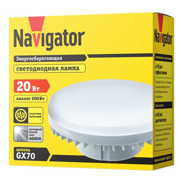 Лампа светодиодная GX70 - это источник света на основе технологии светодиодов (LED). Она представляет собой плоский круглую лампу с цоколем GX70, который обеспечивает высокую яркость и эффективность, используя значительно меньше энергии, чем обычные лампы накаливания.