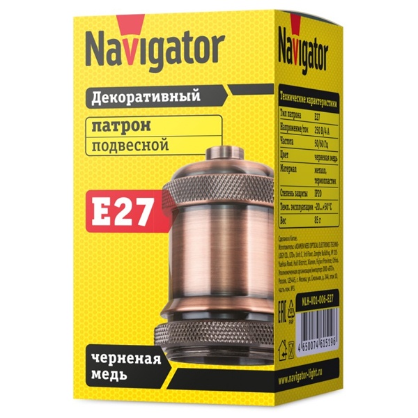 Декоративный подвесной патрон E27 «Винтаж» Navigator серии NLH-V01, черненая медь 61519