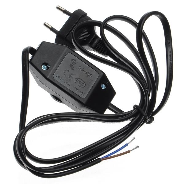 Сетевой шнур длиной 1,7 метра сечением 2x0,5мм2, с вилкой и диммируемым выключателем, с максимальной нагрузкой 500 Вт, черного цвета 61603