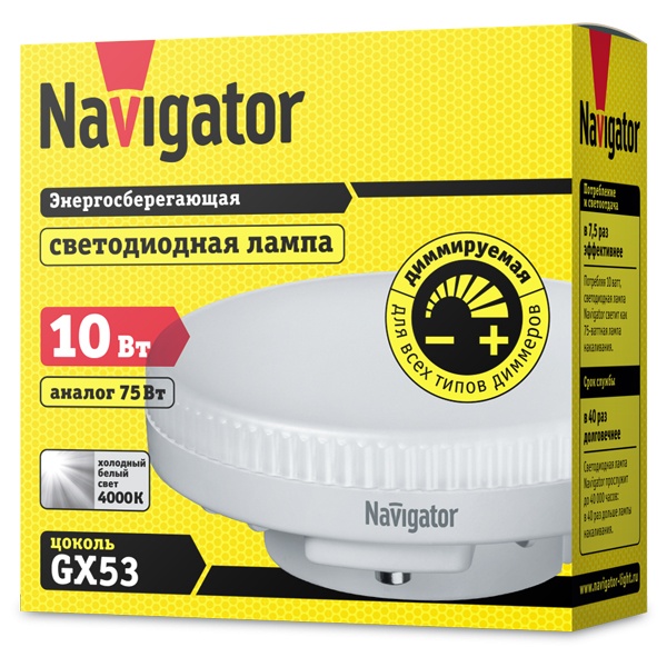 Лампа светодиодная GX53 - это источник света на основе технологии светодиодов (LED). Она представляет собой плоский круглую лампу с цоколем GX53, который обеспечивает высокую яркость и эффективность, используя значительно меньше энергии, чем обычные лампы накаливания.