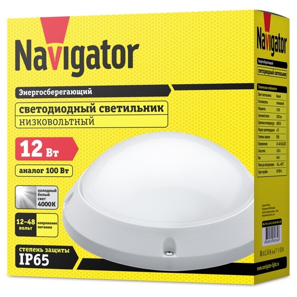 Светодиодный ударопрочный влагозащищенный низковольтный светильник Навигатор, мощностью 12 Ватт, нейтральный белый свет 61634