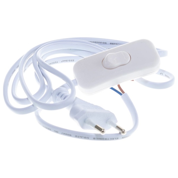 Сетевой шнур длиной 1,7 метра сечением 2x0,5мм2, с вилкой и выключателем, с максимальной нагрузкой 500 Вт, белого цвета 61724