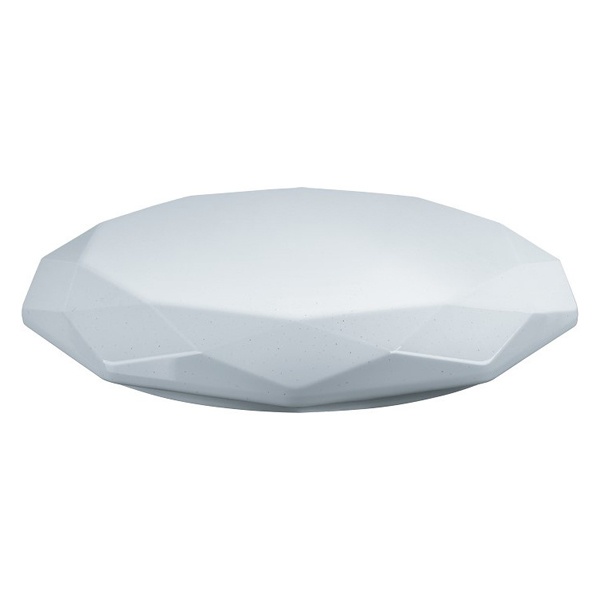Корпус изделия выполнен из качественного белого пластика, устойчивого к пожелтению, выцветанию и механическим воздействиям. Декоративная фактура рассеивателя с алмазным эффектом не только придает светильнику изысканный внешний вид, но и способствует более мягкому и рассеянному светораспределению, что особенно актуально для жилых помещений. Класс защиты IP20 делает устройство пригодным для эксплуатации в сухих помещениях.