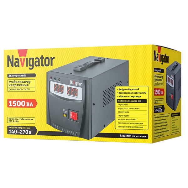Электронные стабилизаторы напряжения релейного типа Navigator серии NVR-RF предназначены для поддержания стабильного однофазного напряжения в сети 220 В, 50 Гц при изменении входного напряжения в пределах 140–270 В, 50 Гц. Прекрасно подойдут для защиты бытовой техники в квартире и загородном доме.