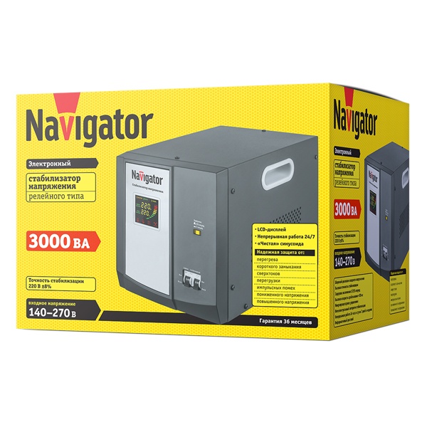 Электронные стабилизаторы напряжения релейного типа Navigator серии NVR-RF предназначены для поддержания стабильного однофазного напряжения в сети 220 В, 50 Гц при изменении входного напряжения в пределах 140–270 В, 50 Гц. Прекрасно подойдут для защиты бытовой техники в квартире и загородном доме.
