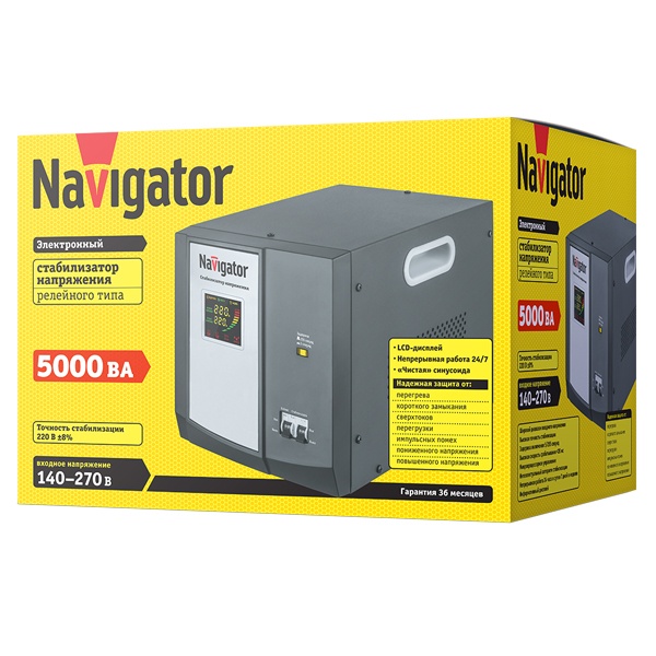 Электронный стабилизатор напряжения релейного типа Navigator серии NVR-RF, напольного монтажа, максимальная выходная мощность 5000 ВА 61770