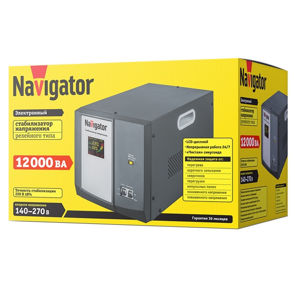 Электронные стабилизаторы напряжения релейного типа Navigator серии NVR-RF предназначены для поддержания стабильного однофазного напряжения в сети 220 В, 50 Гц при изменении входного напряжения в пределах 140–270 В, 50 Гц. Прекрасно подойдут для защиты бытовой техники в квартире и загородном доме.