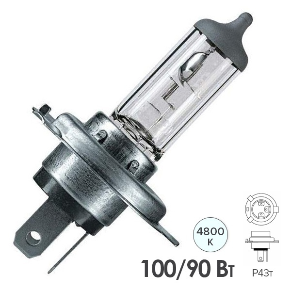 Галогенная лампа повышенной мощности для внедорожного освещения торговой марки Osram серии Super Bright Premium предназначена для головного освещения легковых внедорожных автомобилей. Номинальная мощность устройства составляет 90 и 100 Ватт для разных режимов работы. Световой поток изделия равен 1700 Люменов для ближнего и 2900 Люменов для дальнего света, цветовая температура составляет 4800 Кельвинов. Это потрясающе прочная двухнитевая лампа, которая обеспечивает максимальную яркость даже в самых трудных условиях эксплуатации: область ее применения охватывает спасательные, строительные и транспортные работы. Она отлично подойдет для ралли и бездорожья и относится к типу Н4 с цоколем Р43t. Изделие имеет следующие параметры:
