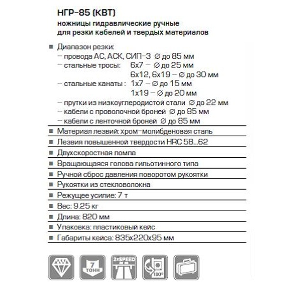 Ножницы гидравлические ручные НГР-85 в кейсе КВТ 63015