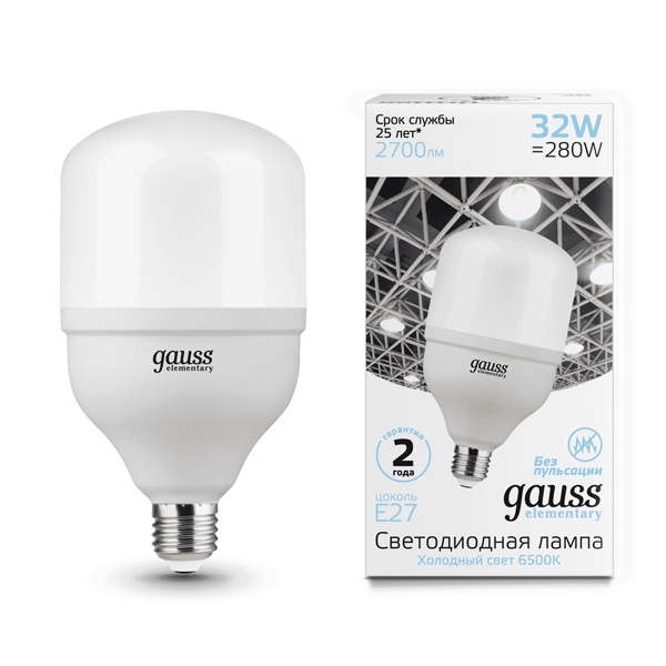 Светодиодная лампа промышленного освещения Гаусс, мощностью 32 Ватта, с цоколем E27, холодный дневной свет 63233