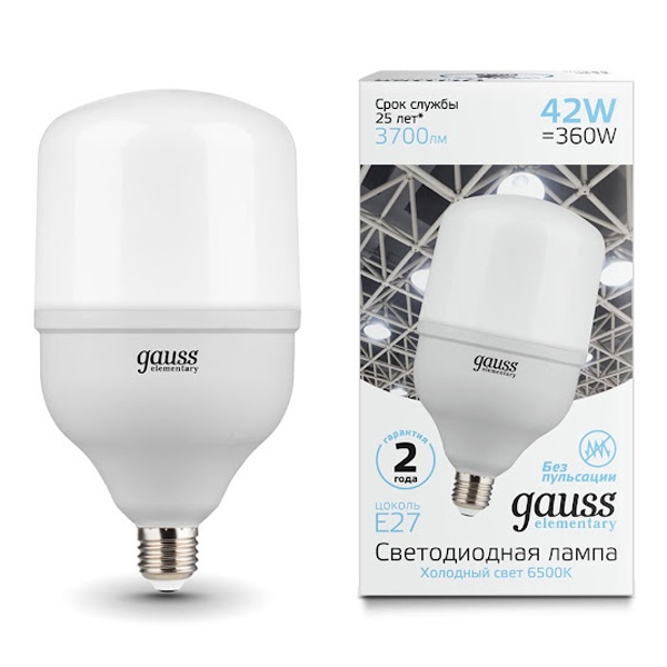 Светодиодная лампа промышленного освещения Гаусс, мощностью 42 Ватта, с цоколем E27, холодный дневной свет 63234