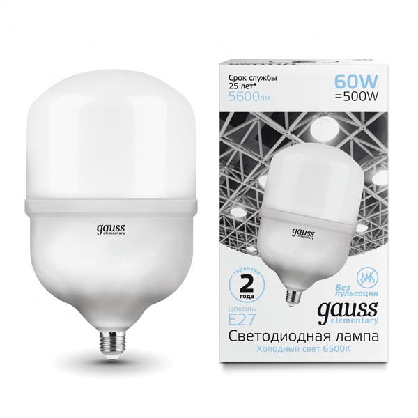 Светодиодная лампа промышленного освещения Гаусс, мощностью 60 Ватт, с цоколем E27, холодный дневной свет 63236