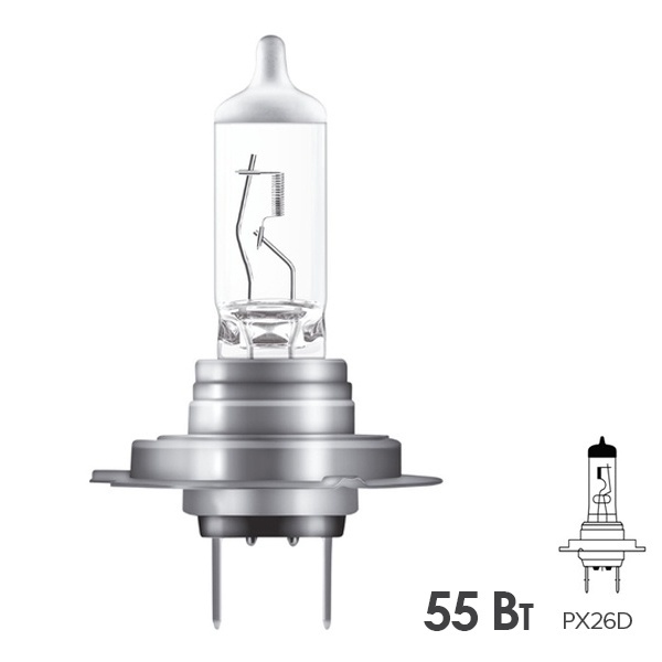 Галогенная автомобильная лампа надежного производителя Osram серии Night Breaker Silver с увеличенной яркостью на 100% излучает максимально мощный направленный свет и увеличивает зону освещения перед автомобилем на 130 м по сравнению с обычной лампой. В результате водитель раньше замечает опасности, быстрее реагирует на них и более точно управляет автомобилем. Эта лампа имеет одну нить накаливания и относится к категории Н7 с патроном PX26d. Номинальная мощность устройства составляет 55 Ватт, она работает от сети легкового автомобиля 12 Вольт и предназначена для ближнего и дальнего света фар. Оно излучает яркий желто-белый свет, его световой поток равен 1500 Люменов. Преимуществами этого осветительного прибора являются отличное соотношение яркости и долговечности. Срок службы достигает до 350 часов. Параметры изделия имеют следующие значения: