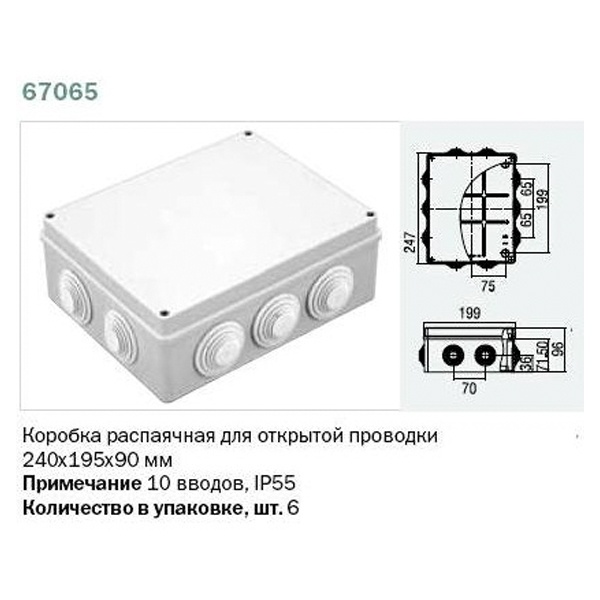 Пластиковая распределительная коробка Tyco для открытого монтажа со степенью защищенности IP55 размером 240х195х90 мм. 67065