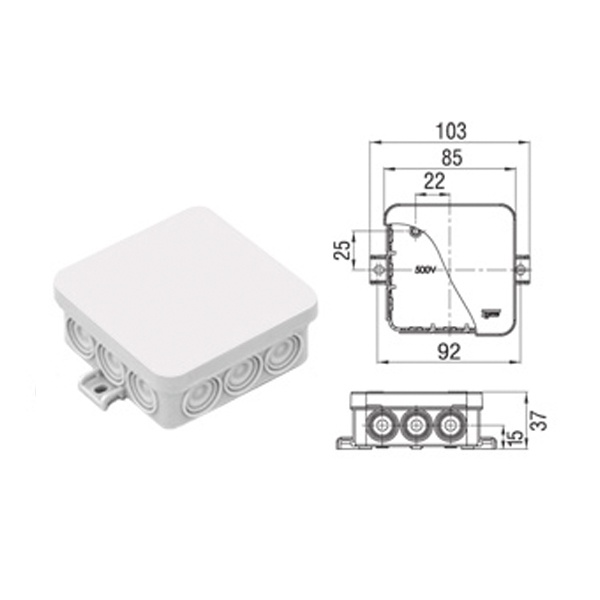 Коробка разветвительная: 85х85х35мм.