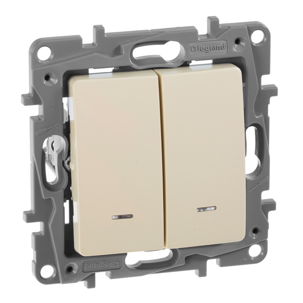 672304 Выключатель двухклавишный с подсветкой Legrand Etika слоновая кость (бежевый)