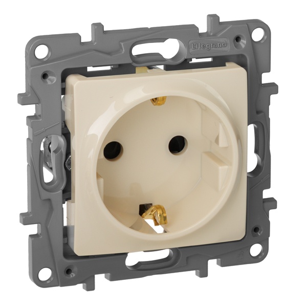 Корпус розетки выполнен из износостойкого материала, устойчивого к пожелтению и механическим повреждениям при ежедневной эксплуатации. Наличие заземляющего контакта повышает уровень электробезопасности, а встроенные защитные шторки препятствуют случайному попаданию посторонних предметов в токоведущие части – это особенно актуально в домах с детьми.