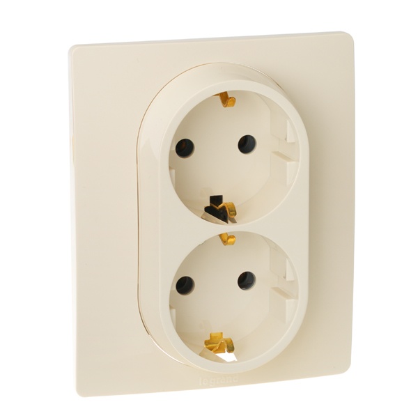 672323 Розетка Legrand Etika двойная с заземлением, винтовой зажим, слоновая кость (бежевый)