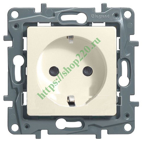 Розетка с заземлением(672325) со шторками фирмы Легранд (Legrand) серии Этика Плюс (Etika Plus). Цвет - слоновая кость. 672325