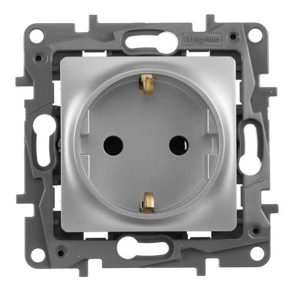 Розетка с заземлением, винтовой зажим (672421) фирмы Легранд (Legrand) серии Этика (Etika). Цвет - алюминий. 672421