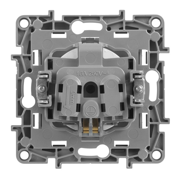 Розетка 2К+З со шторками - немецкий стандарт - винтовые зажимы - 16 А - 250 В~ - Etika - алюминий