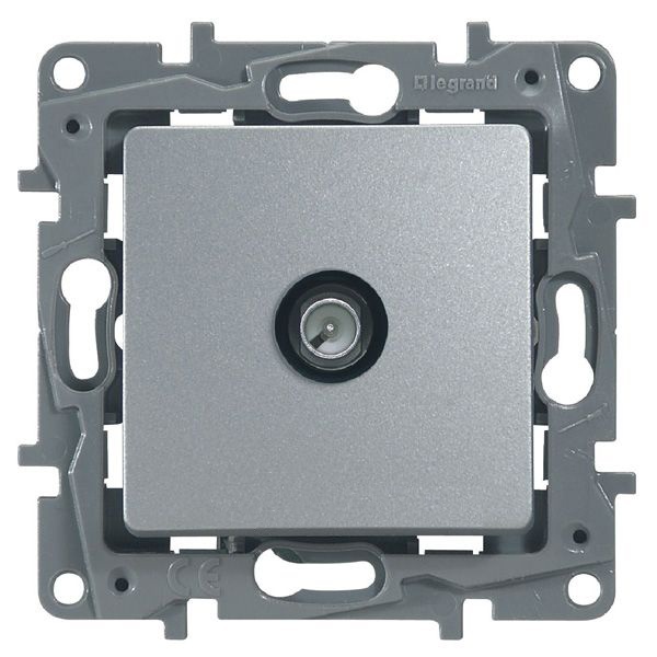 Оконечная телевизионная розетка (672465) с одним разъемом TV на 15 дБ и 5-862 мГц фирмы Легранд (Legrand) серии Этика (Etika). Цвет - алюминий. 672465